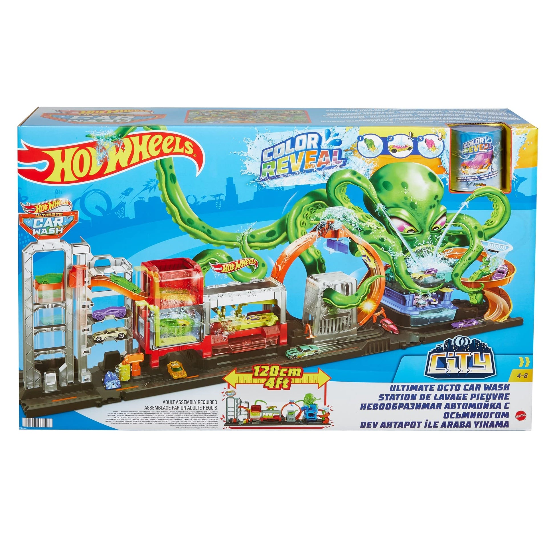 - Gerekli her şeyi içinde barındıran Hot Wheels Dev Ahtapot ile Araba Yıkama Oyun Seti, 1 metreden daha uzundur ve tek bir araçla 2 arabaya birden sahip olmanın keyfini yaşatan yenilikçi Color Reveal özellikli arabayla birlikte gelir